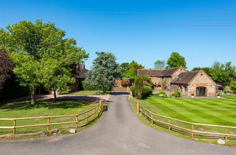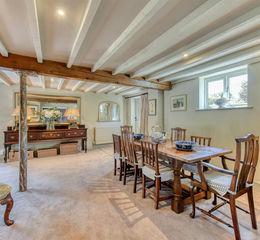 Accommodation - A leaded and braced front door with inset light opens into the DINING HALL with a beamed and raftered ceiling, a window to the front, integrated ceiling lighting and an understairs cloaks and storage cupboard. An open doorway leads to the DRAWING ROOM with a light through aspect with French doors and windows to two elevations, an elegant, veined marble fireplace with quarry tiled hearth and Clearview wood burning stove. There is a SITTING ROOM / OFFICE with a light triple aspect with windows to two elevations and bifold doors to the garden terrace, fitted office furniture with a corner knee hole desk, shelves and cupboards and integrated ceiling lighting. The BREAKFAST KITCHEN has been refitted to an exceptional standard with a comprehensive range of wall and base mounted cabinetry with granite working surfaces, an undermounted ceramic sink, an Everhot 110i electric range, an integrated Bosch dishwasher, an integrated Haier larder fridge, a bespoke, fitted larder cupboard with automatic light, shelving, drawers beneath an door shelving, Karndean flooring, a light through aspect with bifold doors to the garden terrace and two semi circular windows to the front either side of a further window, a feature stone tiled wall and integrated ceiling lighting. There is an INNER HALL with a GUEST CLOAKROOM with a fitted white suite, dado rail and Karndean flooring. There is a BOOT ROOM / LAUNDRY with a stable style glazed, ledged and braced door to the drive, cloaks and boots area with shelved cupboards and drawers, a wide bank of storage cupboards and Karndean flooring. There is a SITTING ROOM with a vaulted ceiling with exposed truss and beams, a light corner aspect with arched windows with a central French door to both the drive and the garden and a delightful open view over adjoining fields and farmland. NB the sitting room and adjoining cloakroom could provide the basis for a self contained ground floor annex should buyers so wish.