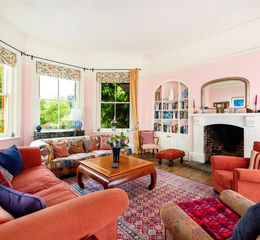 Measuring over 20 ft. by 17 ft., the drawing room has, like the other formal reception rooms, moulded cornicing, picture rails and high skirting boards. There are exposed wooden floorboards and an original brick fireplace with a handmade contemporary fire surround in keeping with the decorative classical style of the arched alcove bookshelves with cupboards beneath on either side. Three sash windows in a bay overlooking the garden, allow natural light to fill the room. The third window looks through a brick archway at the back of the house.