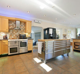 Three Firs offers no fewer than 5 entrance points to the main residence. Whilst the postman might thank you for installing a box by the roadside, in truth, they'll likely cherish the walk to the Utility Door! Upon which the Games Room separates to the left. A modern WC and large Utility provide all the comforts and storage required for a large family. Turning to the right and the heart of this fabulous home unveils itself. A supremely spacious, country style kitchen. Loaded with storage, seating, illuminated cabinets, waste disposal, integrated units and a impressive range oven. Ample space for a large American style fridge freezer and housing a large drinks cooler too.