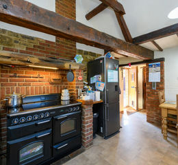 - Entrance hall leads to a kitchen with exposed beams, updated in January 2025, featuring fitted units, an integrated dishwasher, and space for a range cooker, washing machine, and fridge/freezer.