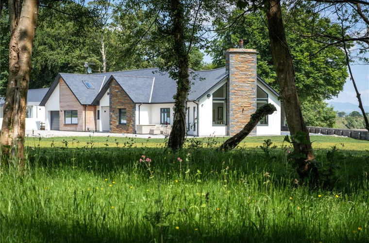 The ground floor also features two well-proportioned double bedrooms, one of which boasts a stylish en suite shower room, alongside a separate study/office and a further contemporary shower room. A beautifully crafted light oak staircase leads to the first floor, where the master bedroom suite enjoys captivating views towards Pwllheli through Velux skylight windows. The suite includes a luxurious en suite bathroom with a sliding door opening into an additional twin-bedded room. A single nursery bedroom and a further double bedroom completes the upper level, offering extensive built-in wardrobes, a dressing table, and an elegant en suite shower room. Other technical features include the heating system and electric gate can be controlled by an app. There are electric blinds throughout, CCTV cameras surround the property as well as satellite internet.