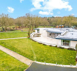 Completely secluded rear garden with patio area, fire pit, gazebo, patio area outside gym, Koi pond area with seating. Plot measuring approximately 4.5 acres.