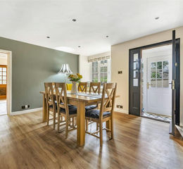 From the central porch, step inside the spacious entrance dining room acting as a social hub to the whole home. To the left is the large sitting room with its picture window looking across the gardens. With mindful integrated storage this room offers both a functional and family space to spend time. The newly fitted log burner sits proud underneath an oak lintel and brings a cosy feel to this super room.