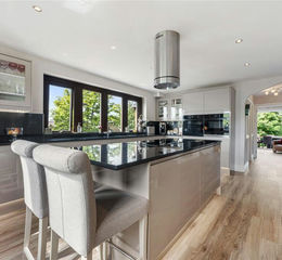 Four double bedrooms, elegant living spaces with 6 reception rooms, a bespoke kitchen, detached leisure suite including a heated indoor pool, gym, and changing rooms.