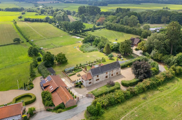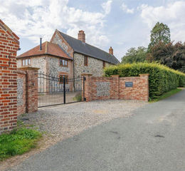 This distinguished detached family residence, with origins dating back to the early 17th century, stands as a rare and beautiful example of English vernacular architecture. Constructed primarily from traditional brick and flint with refined brick dressings and portions of colour-washed render, the property exudes the timeless character typical of the early Stuart period. Elevated on its generous plot of approximately 5.73 acres (STMS) along the well-regarded Dunburgh Road. Its elevated position affords glorious, far-reaching views over the surrounding countryside, creating a setting that is both private and picturesque.