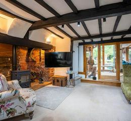 In all, approximately two acres, laid predominantly to lawn interspersed with an abundance of mature specimen trees creating many areas of interest whilst a more formal front garden with a paved central pathway provides the perfect introduction to this period home with well stocked shrub borders and mature pear tree. Enclosed by clipped boundary hedging whilst the majority of the garden backs onto mature ancient woodland enhancing the rural feel of the location. Block and paved terracing wrap around the cottage providing many areas of interest, an ideal entertaining space with a barbeque hut, wooden covered pergola and paved terracing. Enclosed vegetable garden with several raised beds with a children's play area to one corner with wooden barked climbing frame, zipwire and sunken trampoline. A number of outbuildings include a shepherds hut (possibly available by separate negotiation), a fully functioning gym complete with double glazed bi-folding doors, outside wc, (truncated)