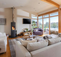 High levels of insulation combined with a water source heat pump and supplementary solar panelling (which produces a Feed In Tariff of approximately £2,500 pa) provide low running costs to a home which is also naturally warm when the sun is lower in the winter months, and slightly more shaded in the summer.