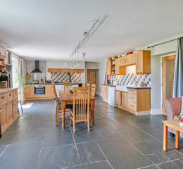 A quite exceptional 15th century farmhouse that retains some fine period details but blends this seamlessly into a light, well-appointed and versatile family home. Approached via a sweeping driveway crossing the front paddock, the farmhouse is offered for sale with an attached annexe/holiday let and gardens, grounds and paddocks totalling over four acres. There is an option to purchase some adjoining land and adjacent two-bedroom barn conversion.