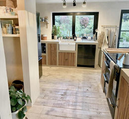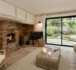 The property has been fully refurbished throughout, featuring beautiful oak flooring and showcasing its original beams and timbers. Upon entering through a welcoming porch, you`re greeted by a stunning open plan kitchen and dining area with a Mediterranean feel. The bespoke kitchen includes a micro-cement island and counter tops, complemented by a bifolding window behind the butler`s sink, seamlessly connecting the indoors to the garden. Large sliding doors open directly onto the terrace, creating a wonderful flow for indoor-outdoor living and entertaining.