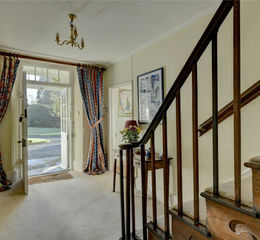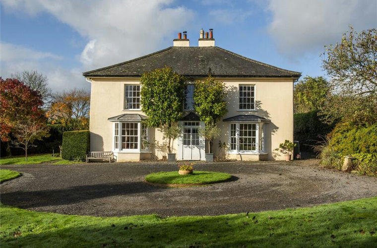 A partially glazed panelled front door leads to the vestibule and then to a handsome panelled front door and into the reception hall with its unusual staircase, believed to be French. On one side the dining room has a bay window overlooking the gardens, Georgian arched recess and built in crockery and glass cupboard. On the opposite side of the hall is the sitting room, a pretty, light and well-proportioned room with French doors to the garden, bay window and fireplace with Yodel wood burning stove. A door leads to the snug with south facing window, fireplace and wall of bookshelves. From the snug a door leads into an inner hall and then into the kitchen which has a fireplace with a two-oven oil fired AGA and range of Shaker style cupboards. A door leads to a staircase down to the cellar. The rear hall has a flag stone floor and cloakroom, with WC and wash basin. At the back of the house there is an office with double aspect, and a secondary staircase to the first floor. The scullery has a flag stone floor, coat hooks, deep sink with wooden drainers, plumbing for a washing machine and a shelved cupboard housing an old water pump. There is a door to a traditional shelved pantry and one to the outside.