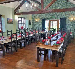 Front ENTRANCE leading to trading areas. PUBLIC BAR with seating for 24. Features heavily beamed effect ceiling, part carpeted and part exposed wood floor. Feature fireplace with brick surround and solid fuel burner. Wood and stone panel fronted BAR COUNTER from central SERVERY. LOUNGE with seating for 12 and with carpeted floor. Feature fireplace and return from SERVERY. Open arch through to FUNCTION ROOM/RESTAURANT which seats 46. Apex ceiling, stripped wood floor and French doors to the garden.