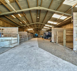 - Superb equestrian purposed barn with six gated stable boxes, warm horse wash shower and hay/straw storage