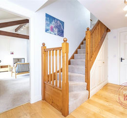 To the first floor is a study landing, a further double bedroom with sloped ceilings and built in eaves storage, and an additional shower room.