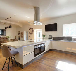 Dining Kitchen - 9.37m x 5.03m approx (30'9" x 16'6" approx) - A stunning space with the kitchen having superb range of contemporary units, beautiful marble surfaces, integrated Siemans microwave, coffee machine, twin ovens, induction hob and ceiling mounted extractor hood above, dishwasher and fridge freezer. There is an undercounter sink with instant hot water tap, window overlooking the rear garden and external access door leading out. There is beautiful wood flooring and throughout.