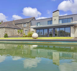 This gorgeous reclaimed stone and granite barn has been sympathetically extended, doubling its size through a striking contemporary addition. Clad in zinc to distinguish the new structure from the original façade, the extension provides a bold yet complementary contrast, forming a recognisable and elegant architectural statement.