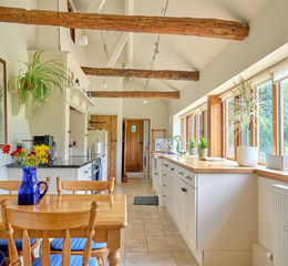 The front door opens to the entrance hall with stairs to the first floor. There is a door that leads to a ground floor bedroom suite which is ideal for future proofing. There is an attractive sitting room with feature fireplace and the room opens at one end into the superb drawing room with large inglenook fireplace with woodburning stove. There is a spiral staircase leading to the principal bedroom suite. The drawing room opens into a light-filled double aspect dining room with French doors to the garden and double doors to the kitchen/breakfast room. This is fitted with a comprehensive range of painted wooden wall and base units and has a delightful aspect over the garden. There is a useful utility room and a further store room. On the first floor the principal bedroom has a large dressing area and an ensuite bathroom and is filled with exposed timbers and character. There are two further double bedrooms and a family shower room. Stairs rise from the landing to an impressive loft room that could be used for a variety of purposes.