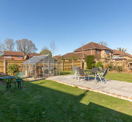 Outside, the gardens have been neatly landscaped, with a raised sandstone patio terrace and greenhouse. There's a double gate to the side, providing good access, if required.