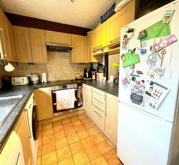 Door to garden. Window to rear aspect. Matching wall and base units with work surface over, in top sink. Space for dishwasher, washing machine and fridge/freezer. Electric cooker and hob with extractor over. Tiled floor. Radiator.