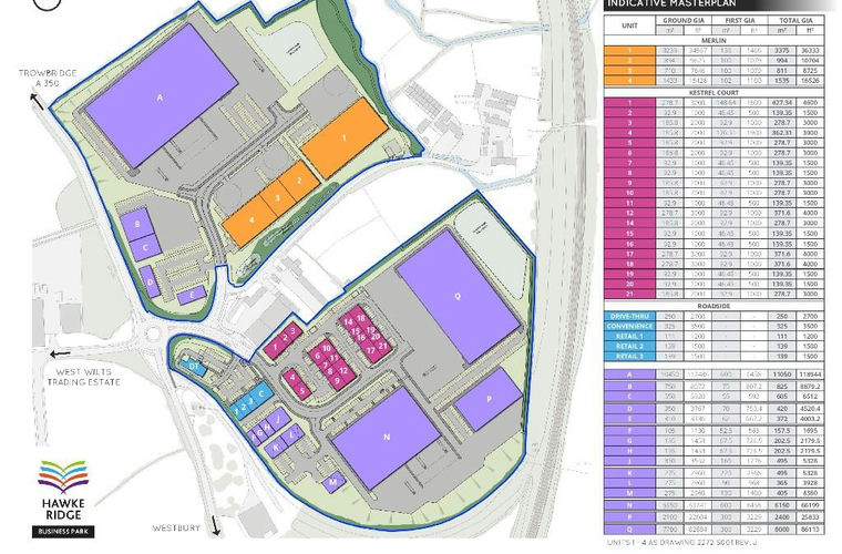 Hawke Ridge Business Park will draw on a significant catchment population of over 165,000 (projected to grow to 230,000 by 2026) with its excellent communication links. Warehousing, distribution, production and assembly represent key sectors along the Wiltshire Crescent. Westbury benefits from excellent road and rail links and is already a proven and established industrial location with many occupiers in the adjacent West Wilts Trading Estate and Northacre Park, comprising approximately 165 acres, including Welton Bibby & Baron, Kotobuki Europe Ltd, Rygor Commercial Ltd, Arla Foods UK and Hills Group. A variety of unit sizes to suit occupiers' specific needs are proposed.