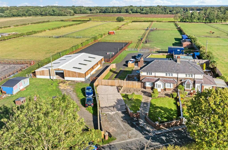A fantastic equestrian property set within rural Lathom. This extended, three bedroom family home is presented to an excellent standard. Situated in a plot of 3.15 acres OTA, the property boasts excellent equestrian facilities to include a recently constructed American barn with menage and well fenced paddocks.Access to the property is conveniently provided by two separate entry points from the public highway. The pedestrian entrance leads you through a charming gateway into the immaculately maintained front garden, which features elegant York stone paving and a neatly manicured lawn with topiary, creating a welcoming first impression.