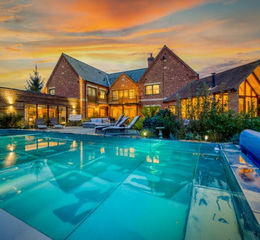 - Light-filled interiors with vaulted ceilings, bespoke finishes, and sweeping views across open countryside