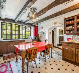 The front door opens to a castellated entrance porch and a spacious reception hall that sets the tone for the home’s impressive scale and warmth. A large formal drawing room with French doors leads onto the rear terrace and frames the exceptional south-facing views. A second sitting room, a formal dining room, and multiple reception rooms, ideal for entertaining or relaxing with family.