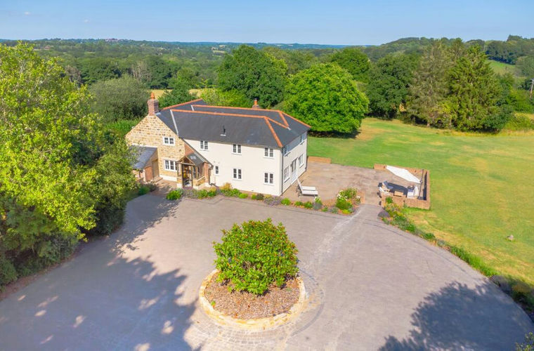 A beautifully presented character country house with a substantial detached three bedroom annex, studio, outbuildings and gardens and grounds extending to 10.27 acres affording spectacular and far reaching country views. This handsome home, dating back to the 1800’s, has been beautifully enlarged and improved and offers light and spacious accommodation extending to 2,289 sq. ft. Within the grounds and accessed via a separate driveway is an outstanding three bedroom detached annex building, constructed in 2015 and provides immaculate secondary accommodation ideal for a relative/multi-generational living or separate lettings/Airbnb potential. The annex extends to 1,272 sq ft and is clad in oak and comprises three bedrooms, a bathroom, a dining room and a large kitchen/living room opening out through bi-folding doors to a decked terrace. The main house offers light and generously proportioned accommodation which comprises in brief, an entrance porch, a good sized entrance hall, a cloakroom, an impressive double aspect sitting/dining room with wide inglenook fireplace and wood burning stove, a pretty study with glazed door opening to the patio and gardens, and a magnificent open plan triple aspect farmhouse style kitchen/family room with twin plate Aga and glazed double doors opening to a south facing terrace. From the entrance hall, a staircase ascends to a first floor landing, a double aspect master bedroom with extensive built-in wardrobes and luxuriously appointed en-suite bath/shower room, four further generous size bedrooms (one of which is en-suite) and a family bathroom. Outside, the property is approached via electronically controlled twin gates on brick pillars leading to a sweeping and re-laid brick driveway which provides extensive off street parking, to one side of the driveway is extensive garaging in the shape of a triple garage above which is a large gymnasium/game’s room. The driveway splinters to the paddocks and further buildings to include a machinery store and a wood store. Opposite the house is a former timber stable building which has been rebuilt to provide two outstanding studio buildings which could provide ideal home offices. The gardens and grounds provide a spectacular backdrop and have been extensively landscaped with a southerly facing terrace immediately adjoining the property beyond which are large expanses of rolling lawn within which is a mature orchard and a large area of natural meadowland with a bank of high hedging and mature trees to the boundaries providing a high level of privacy to all sides. The grounds extend in total to just over ten acres. EPC Band F.