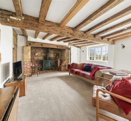 A further double aspect reception room is currently used as a study but would make an ideal play room or snug with exposed ceiling timbers and offers another Inglenook fireplace with a brick hearth, exposed stonework and a cast iron grate.