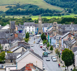 The rear garden is walled, private and generous in scale, with allocated parking and panoramic mountain views. Perfectly located on Heol Maengwyn — Machynlleth’s historic high street — this home offers walkable access to the town’s railway station, cultural institutions like MoMA Wales, shops, cafes and the open-air Wednesday market.
