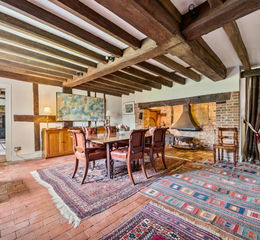 The moment you enter the house you are struck by the elegant proportions. The dining hall is a splendid room with a large inglenook fireplace and beautiful polished brick floor. Approached from the dining hall is the elegant double-aspect drawing room, again with a large inglenook feature fireplace. In addition there is a large study/sitting room with a lovely aspect over the garden and a cosy snug.