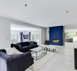 Upstairs, the property continues to impress. The master suite enjoys views across neighbouring woodland, with a walk-through dressing room and stylish en suite shower room. A superb guest suite offers its own lounge, shower room en suite, and a balcony overlooking the rear of the property. Three further spacious doubles share a beautifully appointed family bathroom with large walk-in shower and freestanding bath.