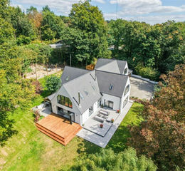 - Nearly 2 acres of landscaped gardens and woodland with multiple entertaining terraces, bespoke pergola with hot tub, and sweeping lawns.