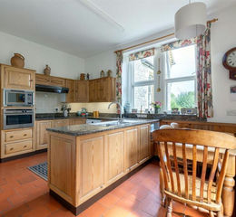 Accommodation - On entering the property, a welcoming entrance hallway sets the tone for the elegant accommodation that follows. Immediately to the left is a well-proportioned study with a front-facing window and a period fireplace, providing an ideal space for working from home. The principal reception rooms — the drawing room and dining room — are both positioned to take full advantage of the beautiful valley views. Each features an attractive period fireplace, while the drawing room is further enhanced by a striking bay window that floods the space with natural light. The kitchen is well appointed, fitted with a good range of cupboards and drawers beneath granite worksurfaces, an electric cooker, and an oil-fired AGA. A door provides direct access to the outside, making it both practical and welcoming as the heart of the home. Across the ground floor are a number of additional ancillary rooms, including useful utility and wash areas, along with a workshop offering excellent flexibility for storage or hobbies.