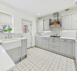Kitchen - Having an exquisite refitted kitchen with beautiful units, quartz work surfaces and tiled surround. Features include a Belfast style sink with antique style mixer tap, integrated oven, four ring gas hob with extractor hood above, concealed fridge freezer and dishwasher and concealed washing machine. Window and door to rear. Tiled floor.