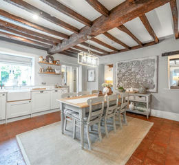 Ground Floor - Entrance hall with cloakroom, leading to the stunning kitchen/dining room recently refitted to include a range of units and integrated appliances. From the kitchen is the cosy sitting room, with a feature fireplace and wood burning stove, and French doors leading to the patio and garden beyond. There is a further family/dining room, also with a feature fireplace and wood burning stove, parquet flooring and French doors leading to a patio seating area at the front of the property. Off the entrance hall is also a utility/boot room with ample storage and a doorway to the garden.