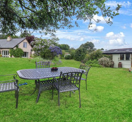 The garden is south and east facing mainly level but gently sloping towards the stream. The property has never experienced any flooding. There is a south facing terrace adjacent to the property and the garden is well stocked with mature shrubs, bushes and plants. There is a large stone outbuilding and greenhouse and a walled vegetable garden. There is a gated drive with off street parking for several vehicles, trailers or caravans. There is also a summerhouse by the stream, a shed and woodstore and the gardens wrap around three sides.