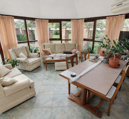 CONSERVATORY 15' x 15' (4.57m x 4.57m) Max Measurement Being well lit by windows to rear and side aspect and fully glazed double doors to side, air conditioning unit and underfloor heating .