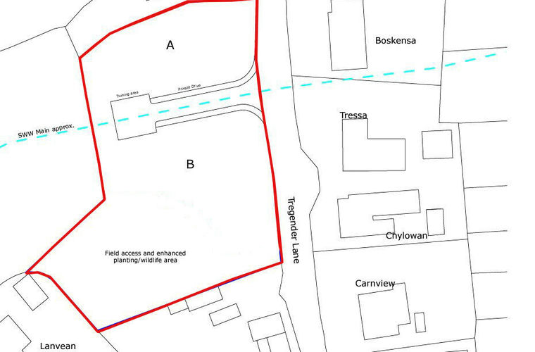 Directions: Head west down the A30 to the village of Crowlas. Turn right into Chapel Square and Tregender Lane shortly after the convenience store on the right, just after the pelican crossing. Follow this road for a short distance and the site will be found on the left hand side, just after the chapel and identified by a Lodge & Thomas for sale board.