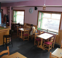 Staircase access from the main bar to first floor RESTAURANT, a feature room with high beamed vaulted ceiling, boarded floor, farmhouse style and upholstered ladderback dining chairs to heavy constructed pine farmhouse tables currently arranged for 40 diners. A further set of LADIES AND GENTLEMEN'S TOILETS. OFFICE SUITE/STORE of main office, storeroom and STAFF KITCHEN.