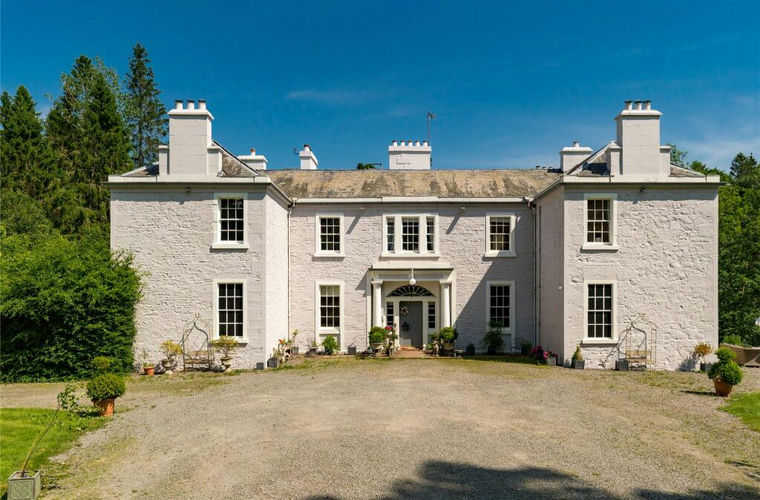 Dumcrieff House is an exceptional Georgian manor house nestled in the picturesque Moffat Hills of Dumfries & Galloway, surrounded by ancient trees. Set within approximately 11.5 acres of private land in an elevated position overlooking the Moffat Water valley, this manor house features a private gated drive and is nestled in ancient woodland, with direct river access to the north and east of the property.