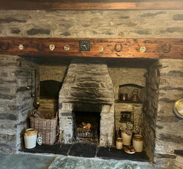 14' 3" x 15' 4" (4.34m x 4.67m) With Inglenook feature fireplace with exposed beam incorporating various bread ovens and a log burning stone. Built-in glazed corner unit exposed beamed ceiling.