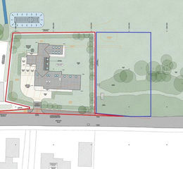The plot is shown on the plan outlined in red, the area outlined in blue is available by separate negotiation.