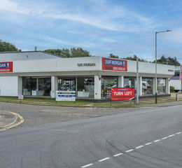 The subject property comprises a purpose-built motor dealership partially of steel portal frame construction, clad with PVC-coated profiled sheet steel.