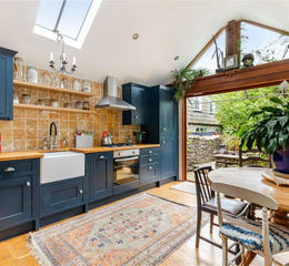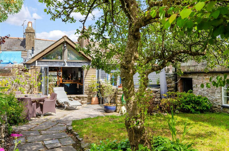 The main cottage, believed to date from the late 1800s, is arranged over three floors with great attention to detail and an abundance of period features, including exposed timber and stone, vaulted ceilings, and polished wood floors. The ground floor (street level) comprises an entrance hall and double bedroom with an en suite shower room, and a circular staircase, rises to the first floor, which offers a second double bedroom and stylish bathroom with rain head shower. The top floor opens into a breath-taking open plan living and dining room, with a high vaulted ceiling, open fire, and an elegant kitchen, fitted with a range of units, butler’s sink, and integral appliances, including a dishwasher, a fridge freezer, a gas hob, and an electric oven. Trifold doors concertina back to ensure the full-width south-facing terrace and beautifully landscaped gardens beyond are fully enjoyed.