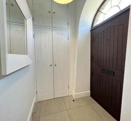 Entrance Hall - Fitted cloaks cupboard with storage above. Tiled floor