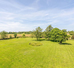 A driveway to the side of the house provides access to the rear parking area and the outbuildings occupying a former coach house. The superb outbuildings have been configured as a garage and a fully converted home office. The former cart shed opens to the gardens beyond whilst there is a workshop to the side plus storage above. There is an EV charging point beside the garage. Extending behind the coach house, there is a formal walled garden which is mostly laid to lawn with seating terraces including a patio with a pergola over and a charming sunken terrace at the far end. The grounds continue into a further garden/orchard and then a substantial lawned garden at the rear. This level garden area extends to around 1 acre backing onto the surrounding farmland and features a delightful tranquil pond area.