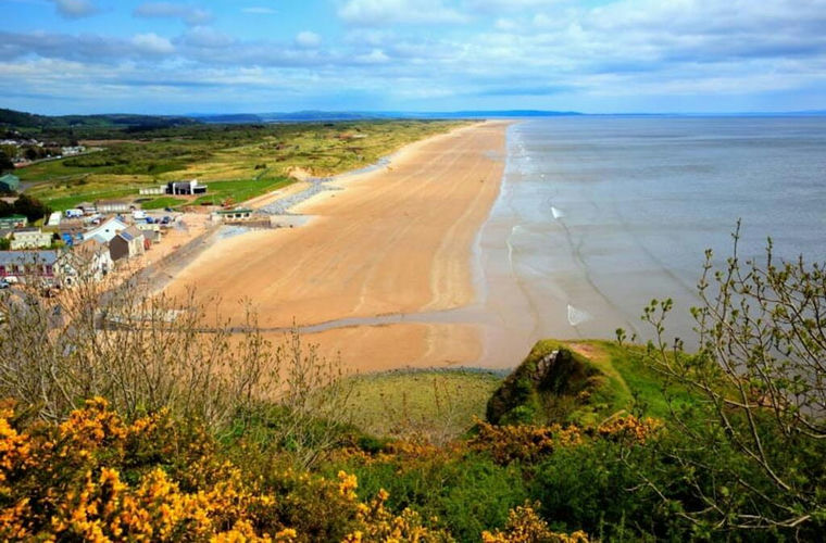 - Views Pendine Beach, water and beyond to Worms Head and Devon