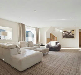 A private, tree lined avenue provides an elegant approach to the property, whose striking façade and refined interiors create an immediate sense of grandeur. The flexible layout, extending across two wings, offers an ideal balance of formal and informal living, perfect for multi-generational families or those seeking versatile accommodation.