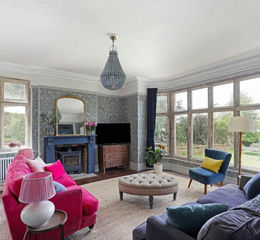 The drawing room leads off the reception hall and is a wonderful light-filled room which works equally well for hosting as for cosy evenings at home. Magnificent ceiling-height stone mullion windows overlook the garden and bespoke glazed doors open to the inner reception hall. A wood burning stove provides a warming focal point to the room. A separate dining room is ideal for more formal entertaining with double doors opening to a sheltered outside seating area, creating the perfect spot for alfresco dining.