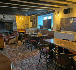 The Bell occupies a fine 17th century Grade II listed property. It has colourwashed render over cob and stone, under a gabled, thatched roof with a pitched slate rear extension.